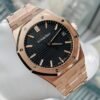 Audemars Piguet Royal Oak 15400OR.OO.1220OR.01 Mens Watch. 41mm 18K rose gold case with 18K rose gold octagon-shaped fixed bezel. Black grande tapisserie pattern dials with rose gold-tone luminous hands and luminous index hour markers. Date display at 3 o’clock position. 18k rose gold bracelet with fold-over clasp with hidden double push-button safety. Will fit up to a 7.5-inch wrist. Sapphire crystal. Transparent sapphire crystal case back. Caliber 3120 automatic self-winding movement with a 60-hour power reserve. Original box and papers included.