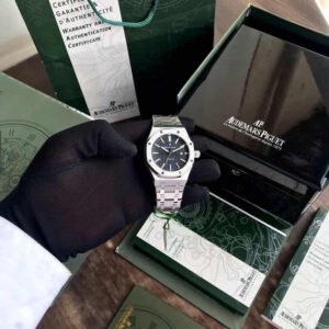 This New iteration of the-Audemars Piguet Royal Oak Model a Stainess Steel case with a Black and a high-flying astrological complication.